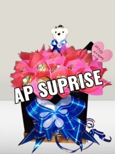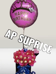 A chocolate bouquet is a creative and indulgent gift, where assorted chocolates are arranged in the shape of a bouquet of flowers. The chocolates are often creatively wrapped and presented on decorative stems or in a stylish box, making it a sweet and memorable gift for any occasion, from birthdays to anniversaries or special celebrations. Perfect for chocolate lovers, this unique gift combines the beauty of a flower bouquet with the irresistible allure of fine chocolates.